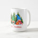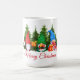 Merry Christmas Colourful Fun Watercolor Gnomes with Christmas Presents Holiday Mug with Pine Trees.