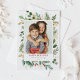 Watercolor Gold Foil Greenery and Holly Photo Holiday Postcard