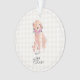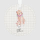 Watercolor Dog Design in muted colours, pink flowers around neck, light grey trim on off white gingham background with custom DOG NAME in dark grey. Sweet Dog Memorial, Holiday Ornament, Family Pet, Keepsake. Sweet, Colourful, Timeless. Mix and match entire Pet Lover / Pets Collections by TMCdesigns.