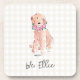 Watercolor Golden Flowers Love DOG NAME Gingham Coaster
