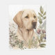 Watercolor Golden Labrador Retriever and Flowers Fleece Blanket