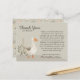 Express your heartfelt gratitude with our charming thank you card adorned with sweet watercolor geese and lush greenery. The front features customisable text, allowing you to personalise your message, while the back showcases an adorable pattern of little geese and hearts. Perfect for sending thanks after your baby shower. Spread love and appreciation with every note.