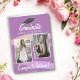 Purple Watercolor Graduate Congratulations 2 Photo Card. Trendy pink watercolor stripes. Personalise with 2 photos and the name of the graduate on the front and the message inside the card or erase it.