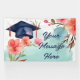 Celebrate this momentous achievement with our exclusive Graduation Party Banner, the perfect addition to commemorate the graduate's special day. This elegantly designed banner features customisable text, allowing you to personalise the message for your graduate, making it a unique and memorable centerpiece for the celebration. The backdrop is adorned with a stunning watercolor floral graduation cap design, showcasing a harmonious blend of soft blue, peach, coral, and green hues. These gentle colours set a joyful and uplifting mood, enhancing the festive atmosphere of your graduation party. Crafted with high-quality materials, this banner not only serves as a beautiful decoration but also as a lasting keepsake of this significant milestone. Ideal for indoor or outdoor settings, it's a tasteful and sophisticated way to add a touch of personalisation and style to your graduate's big day.