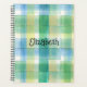 Fun green and blue watercolor plaid planner featuring a customisable name, perfect to make back to school or starting college memorable.