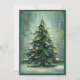 A rich green Christmas tree painted in a textured watercolor forest setting, with glowing lights and soft snowfall. Ideal for classic Christmas lovers seeking traditional yet artistic seasonal decor.