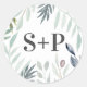 Green foliage wedding stickers personalised with your initials to use on envelope seals or party favours for your wedding.