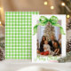 Watercolor Green Gingham Bow Christmas Photo Holiday Card