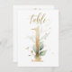 Beautiful table number card with a botanical motif - a watercolor illustration of green and gold leaves. Table 1. Please, check all available numbers