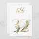 Beautiful table number card with a botanical motif - a watercolor illustration of green and gold leaves. Table 32. Please, check all available numbers