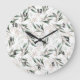 Watercolor green leaf gum nut pink flower large clock