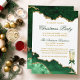 Modern Elegant Watercolor Emerald Green and Gold Marble Agate Geode Christmas Party Invitation Card - White Background with Gold Script. Champagne Glass with Bow.