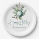 Watercolor Green Ornament Trendy Holiday Party Paper Plate