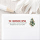 If you are looking for a simple minimalist beautiful and easy editable Christmas return address label. This one is perfect for you. And as you see the design features a watercolor hand made and drawn Christmas tree with ornaments decoration in red and gold . With red typography of your family name. And your return adress under it.