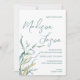 Gorgeous green watercolor seaweed finishes off this simple these simple, yet modern wedding invitations. Perfect for a beach themed wedding.
