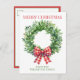 Watercolor Green Wreath With Red Gingham Bow Postcard