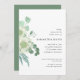 This stylish bridal shower invitation features a watercolor graphic of eucalyptse greenery and flowers that appear on the left side of the invite. Personalise this minimally elegant invitation with your event details.
