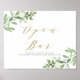 Watercolor Greenery and White Flowers Open Bar Poster