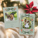 Celebrate the season with this watercolor greenery bow “Merry Christmas” design, featuring a hand-painted ribbon and berry frame around your main photo on the front and a coordinating bow with a second photo and custom message on the back. Includes a light green background color. The classic red script greeting and evergreen foliage create a warm, timeless look that’s perfect for families, couples, or expecting parents sharing joyful news. All text and photos are fully editable, so you can personalize the greeting, family name, year, and back message—whether you’re simply sending festive wishes or announcing a new baby in the year ahead.
