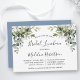 Modern Elegant Watercolor Botanical Greenery Bridal Shower Luncheon Invitation Card includes eucalyptus leaves, green botanical foliage, dusty blue leaves and other beautiful botanical greenery. Calligraphy Script. Dusty Blue Back.