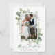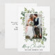 Modern Minimalist Elegance Calligraphy Ink Pen Handwritten Script Merry Christmas Photo Holiday Card includes Elegant Watercolor Greenery & Eucalyptus Leaves. Newlywed Couple Wedding Photo. Green Script.