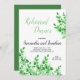 This rehearsal dinner invitation offers trendy watercolor greenery and calligraphy text, a perfect design for a spring of summer wedding. The background is white accented with the watercolor greenery across the bottom and on the right top corner. The backside is green and can be changed to any colour by choosing customise.
