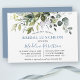 Modern Elegant Watercolor Botanical Greenery Bridal Shower Luncheon Invitation Card includes eucalyptus leaves, green botanical foliage, dusty blue leaves and other beautiful botanical greenery. Trendy Calligraphy Script. Dusty Blue Back.
