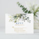 Watercolor Greenery Dusty Blue Gold Wedding RSVP Card