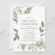 Organic inspired greenery first holy communion invitation with geometric frame designed to be quickly and easily customised to your event specifics.