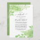 Trendy green and white online long distance virtual wedding invitation featuring ferns, branches and leaves designed to be quickly and easily customised to your event specifics.