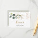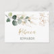 Elegant flat place card featuring an illustration of green and gold foliage in watercolor style. In this design you can remove the sample text (blank card). Then you would have to write the individual names by hand.