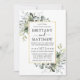 Modern Elegant Watercolor Botanical Greenery Wedding Invitation Card includes eucalyptus leaves, green botanical foliage, dusty blue leaves and other beautiful botanical greenery. Gold Frame, Dusty Blue Back
