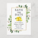 Modern Watercolor Eucalyptus Greenery Lemons Gold Frame Save The Date Engagement Announcement Postcard