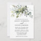 Modern Calligraphy Script Elegant Watercolor Botanical Greenery Wedding Invitation Card includes eucalyptus leaves, green botanical foliage, dusty blue leaves and other beautiful botanical greenery. Green Back.