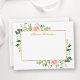 Modern Elegant Watercolor Eucalyptus Greenery Pink Roses Personalised Gold Frame Note Card. Gold Script.
