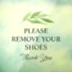 Kindly remind your guests to remove their shoes with this custom window cling decal. This elegant window decal features a watercolor greenery leaf branch and modern calligraphy script font.