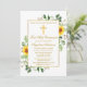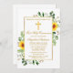 Modern Elegant First Holy Communion Invitation includes watercolor sunflowers, eucalyptus leaves and other beautiful botanical greenery foliage. Gold Cross.