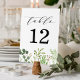 Stylish botanical table number cards featuring your table number, names, and wedding date with painted watercolor foliage in vibrant shades of spring and moss green below. The botanical table numbers are designed to coordinate with our Watercolor Greenery wedding collection. Add each table number card to your cart individually.