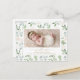 Watercolor Greenery & White Flowers Pattern Birth Announcement Postcard