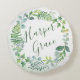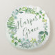 This round pillow features a modern watercolor wreath design with greenery leaf foliage and eucalyptus. The design is the same on the front and the back. Personalise this pillow with a name.