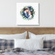 This lovely wrapped canvas art features a watercolor wreath filled with trendy green leaves and dusty blue berries, and your personal photo appears in the centre. There is also room to personalise with your names.