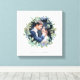 Watercolor Greenery Wreath with Blue | Photo Canvas Print