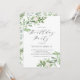 Invite guests to your event with this customisable birthday party invitation. It features watercolour bouquets of greenery and white flowers with a matching botanical pattern. Personalise by adding your details. This greenery birthday invitation is perfect for spring and winter birthday parties.