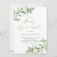 Invite guests to your event with this customisable baby sprinkle invitation. It features watercolour bouquets of greenery and white flowers with a matching botanical pattern. Personalise by adding your details. This greenery baby sprinkle invitation is perfect for gender-neutral baby showers and spring and winter baby showers.