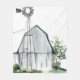 Watercolor Barn I by Jennifer Paxton Parker. Grey-white coloured barn with greenery and a small windmill.