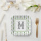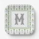 Watercolor Grey Bows and Green Topiary Monogram Paper Plate