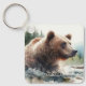 Watercolor Grizzly Bear Wildlife Nature Art Key Ring