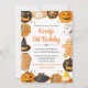 Watercolor Orange and Black Halloween Cookie design with pumpkins, ghost, bat, candy corn, witch hat, coffin and spider cookies