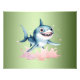 Watercolor Hand Drawn Cute Playful Baby Shark Photo Print
