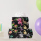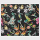 Watercolor hand drawn seamless pattern with tropical summer flowers and exotic birds on black background